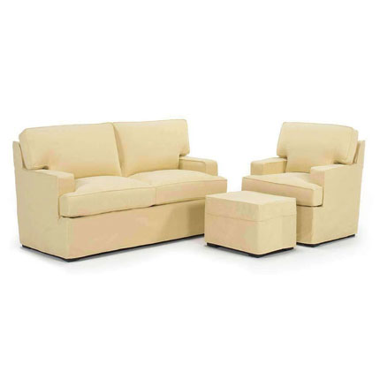 Includes 1 sofa (pictured), 1 chair (pictured), and 1 ottoman (pictured). See individual pieces for dimensions. Available in 50 assorted fabric and 2 distinct leg color choices! Price shown is for Tier 1 fabric color option.