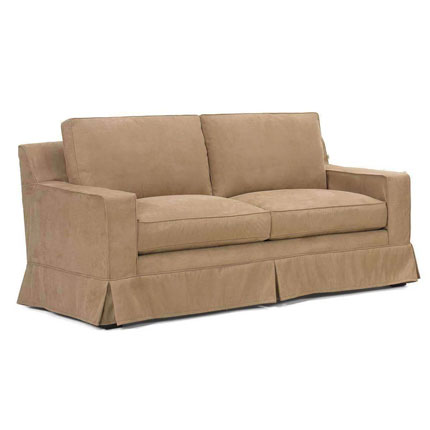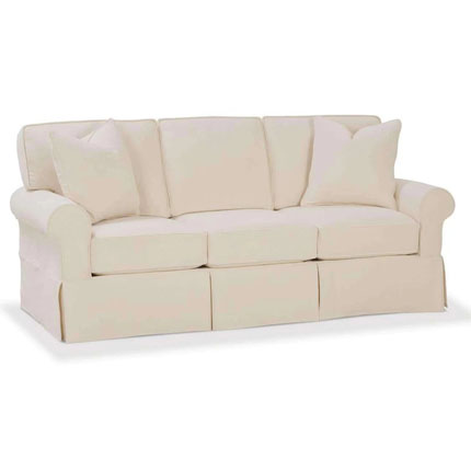 Warm up any room with this fabulous Christine Slipcovered Sofa with skirt. Complete with elegant rolled arms, bottom skirting and a comfortable pillowback, this clean and contemporary sofa is meant to suit any interior décor scheme. The removeable and washable slipcovered feature makes this traditional sofa a perfect option for anyone with kids or pets. Available in 100 assorted fabric choices, including Euro velvet, microfiber and twill, this custom sofa can be tastefully tailored to your tastes. You can also choose between standard polyfiber wrapped and down feather wrapped seat cushions for guaranteed full-body comfort.